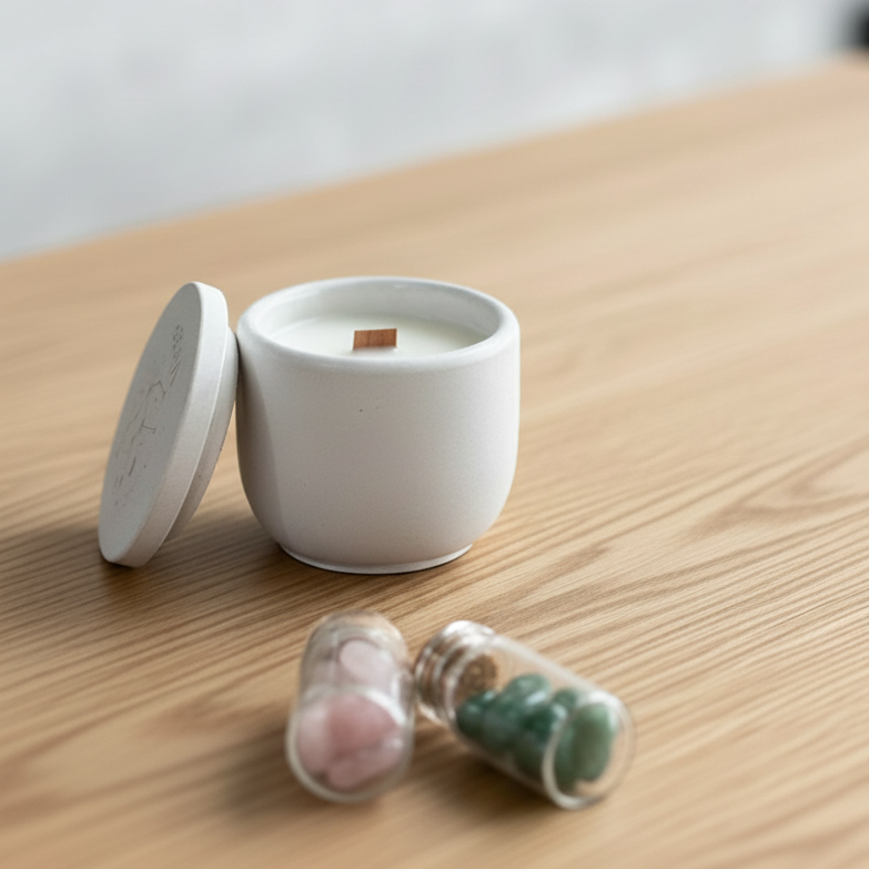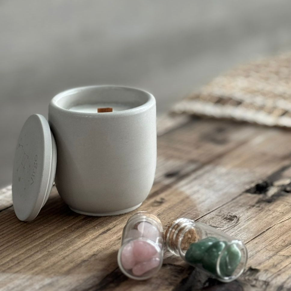 Set Elúz: 3 velas aromáticas con tapa y charola