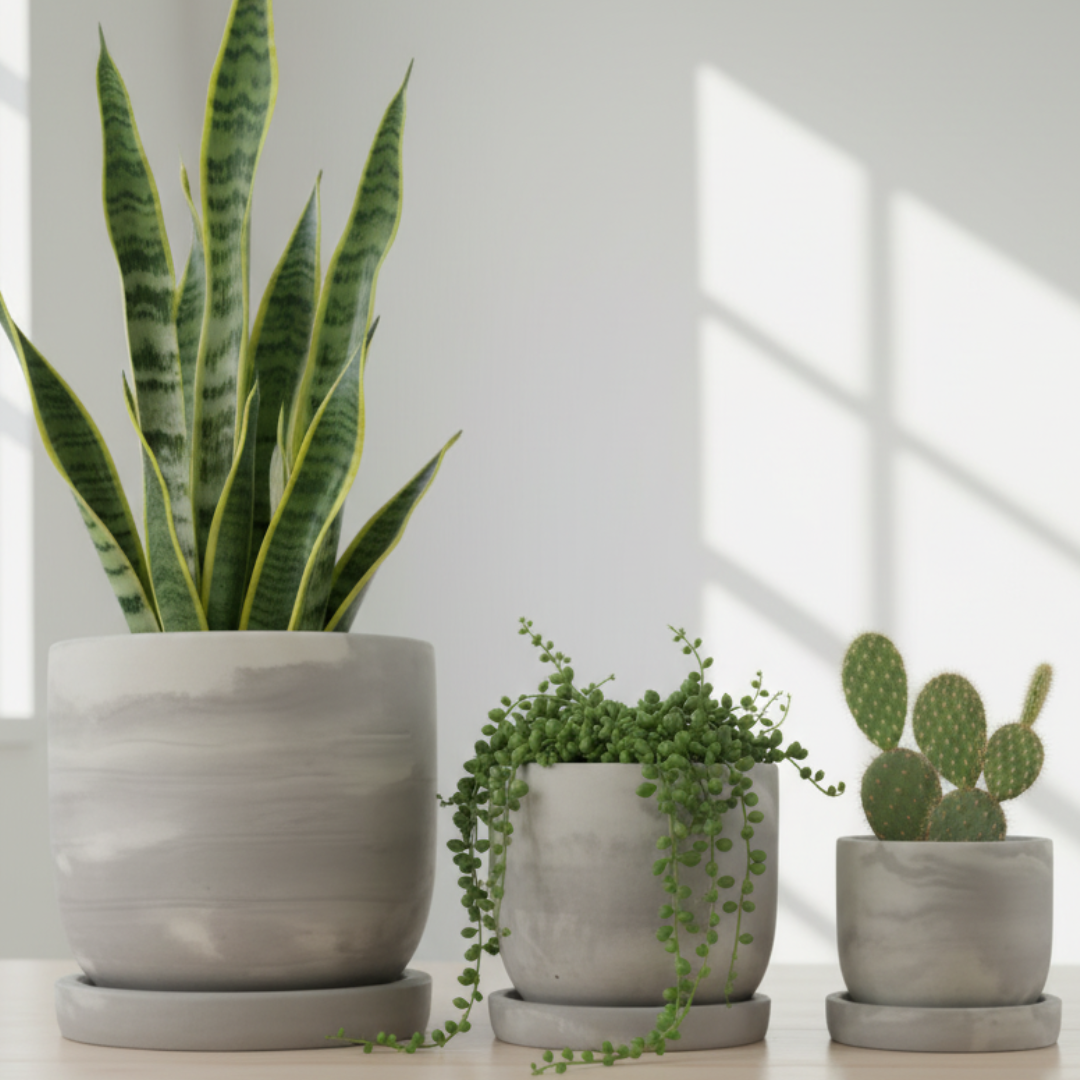🌿 Piezas artesanales con líneas limpias y acabados sellados. Diseñadas para realzar tus plantas y durar años.
