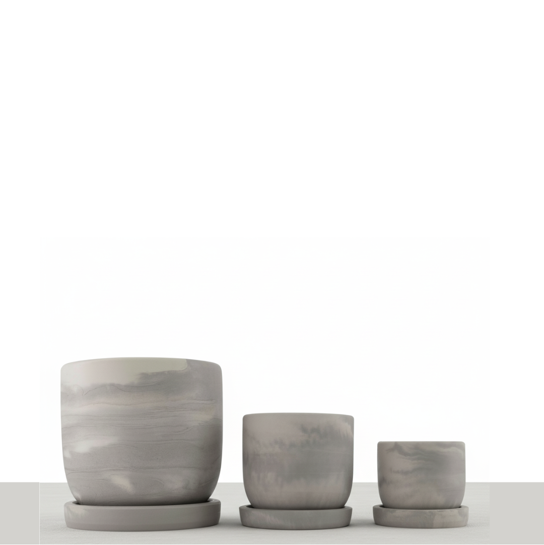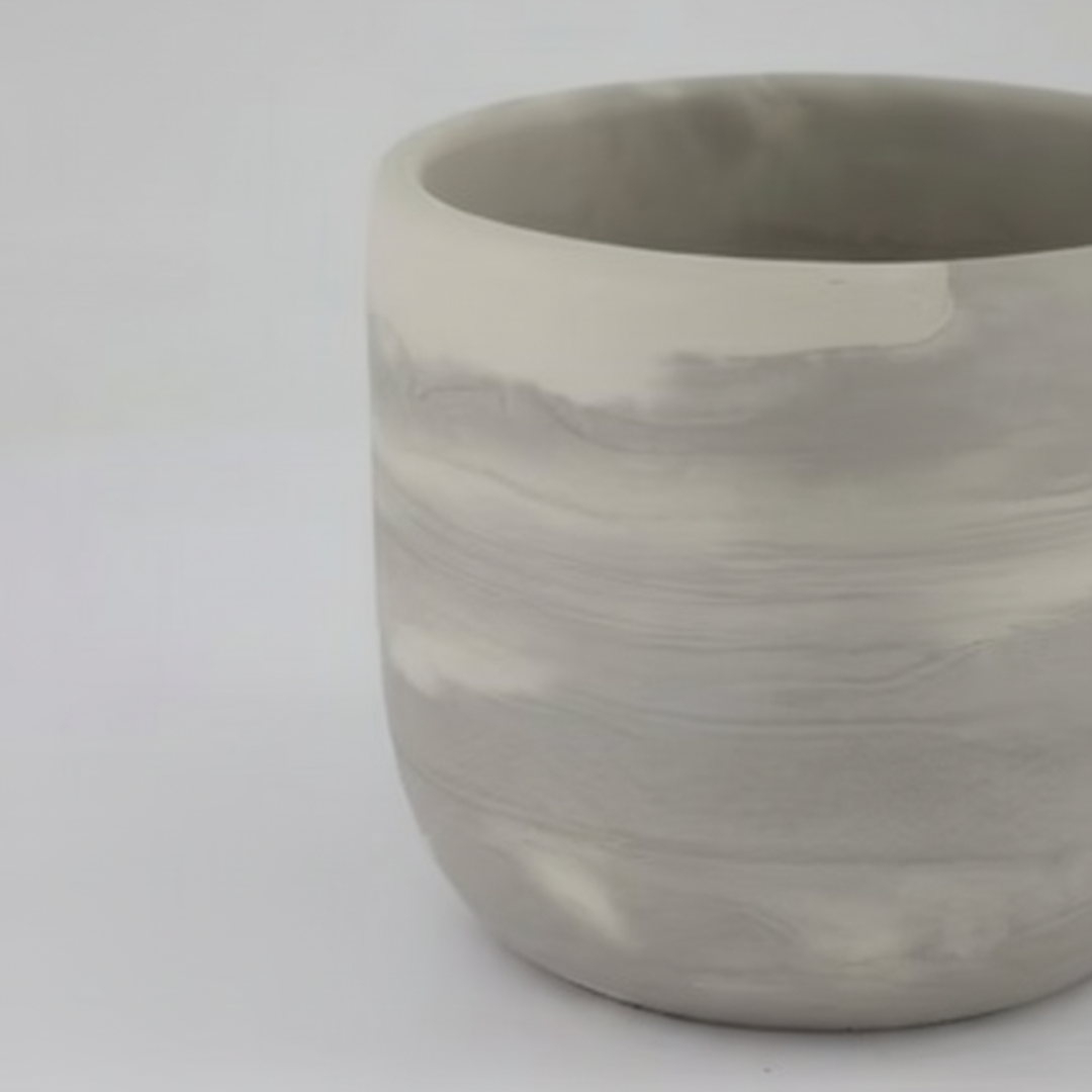 Nuestras macetas Tulip marmoleadas están hechas a mano en concreto, logrando un acabado artístico que combina tonos suaves y vetas naturales que hacen que cada pieza sea irrepetible.
