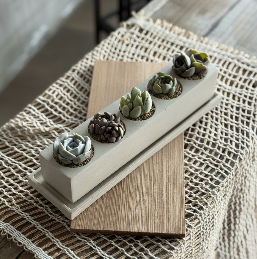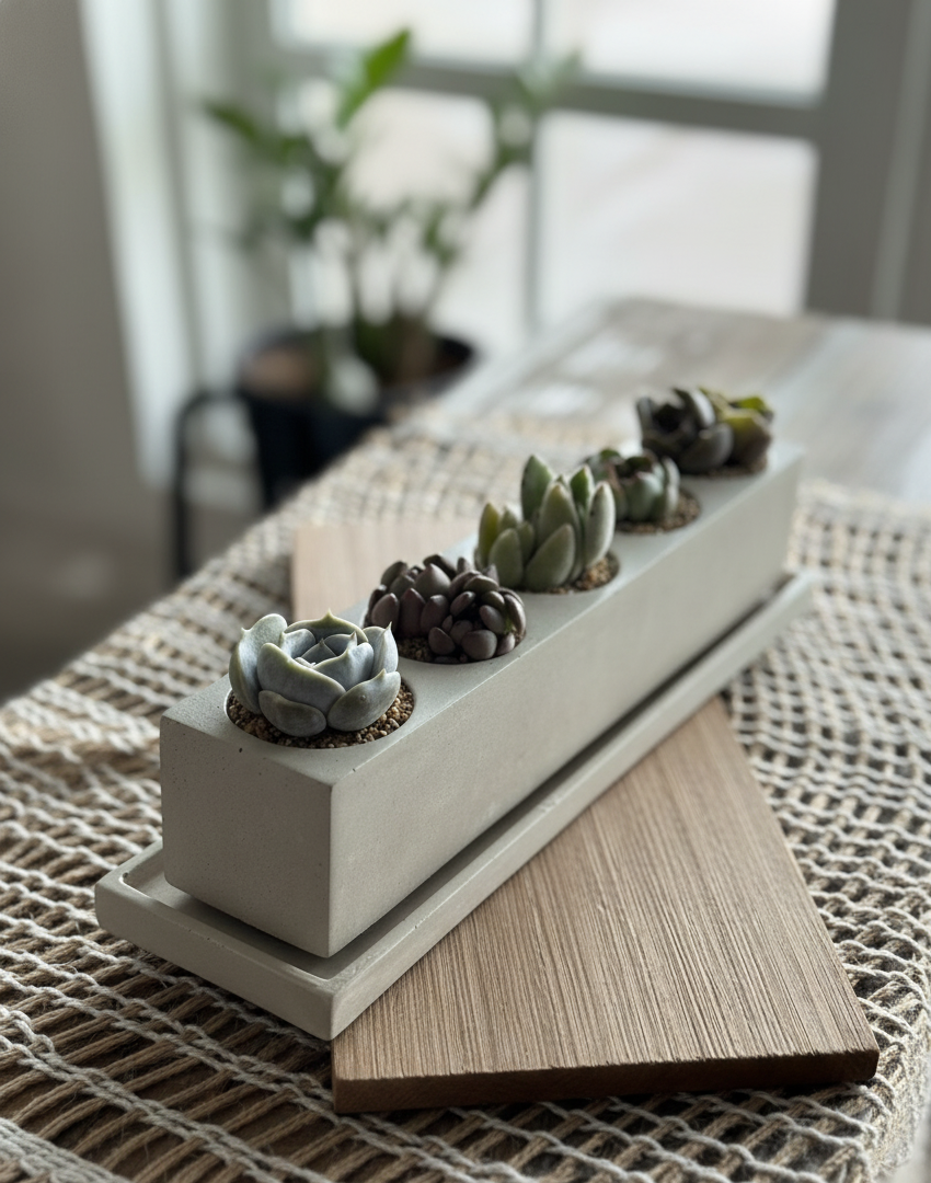 Cada suculenta es elegida por su belleza única y su fácil mantenimiento, lo que convierte a este centro de mesa en la opción perfecta tanto para amantes de las plantas experimentados como para aquellos que buscan añadir vida sin complicaciones. Su diseño compacto y sofisticado lo hace ideal para cualquier superficie: desde la mesa de tu comedor, una estantería en tu sala, hasta tu escritorio de trabajo.