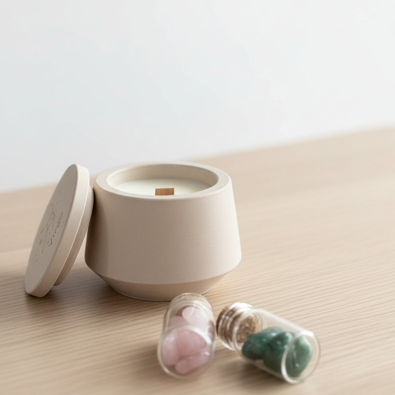 Nuestros envases están elaborados en concreto de alta calidad. Son hechos a mano, resistentes, y con un acabado artesanal que los convierte en una pieza decorativa incluso después de que la vela se termine. Además, puedes reutilizarlos como maceta, portaobjetos o para nuevas recargas.