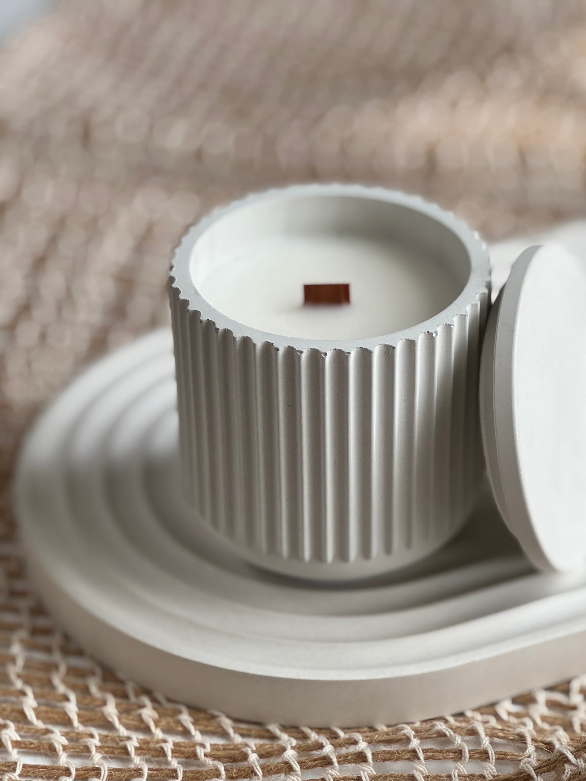 🌱 Fragancias envolventes en contenedores de concreto reutilizables. Crea atmósferas cálidas y sofisticadas.