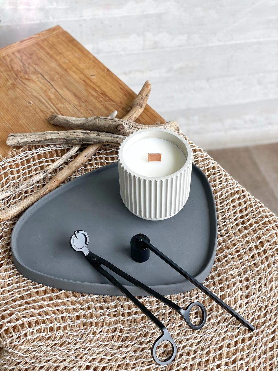 Disponible en varios colores neutros, esta vela es ideal para quienes buscan un estilo minimalista con un detalle único y distintivo.